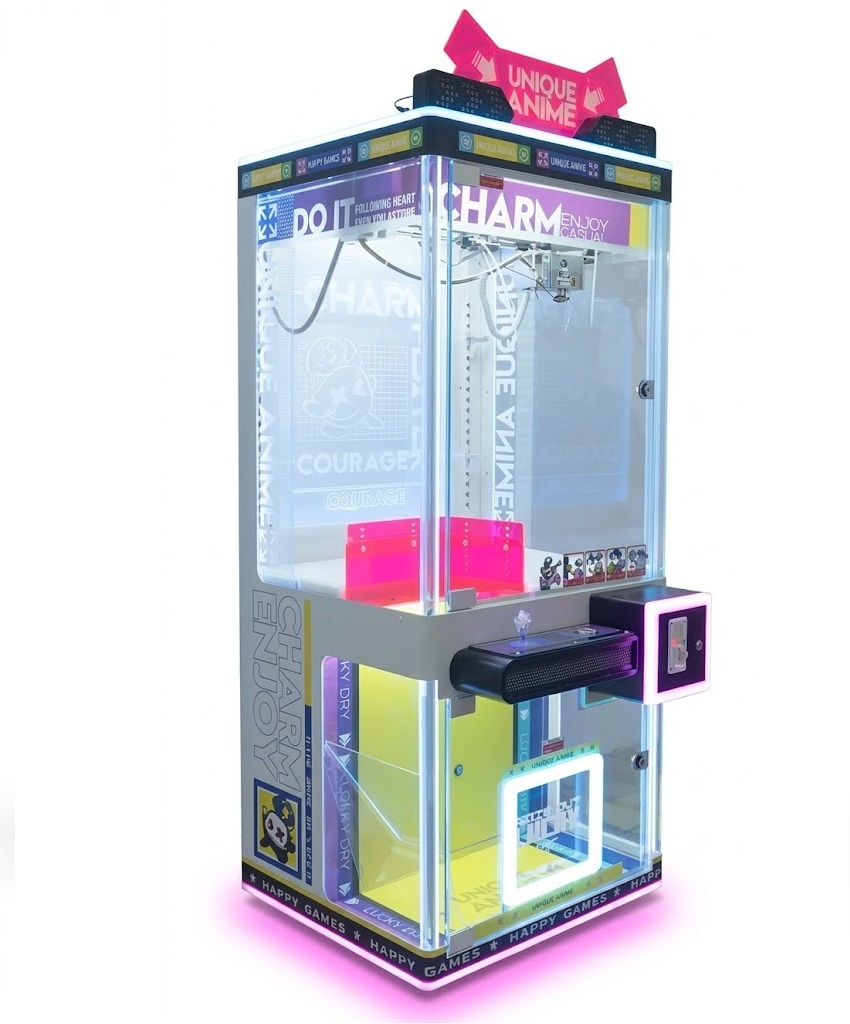 La Peluchera Lagom combina una estructura resistente 🪵 con un diseño moderno que ilumina el ambiente ✨. Además, permite personalizar tu marca con pegatinas de logotipo 🎨, creando una máquina única, atractiva y perfecta para destacar en cualquier espacio 🎮💰