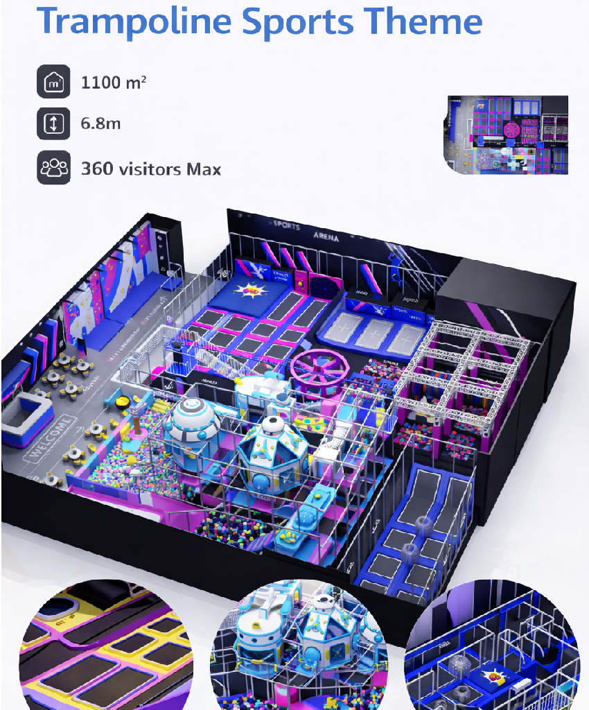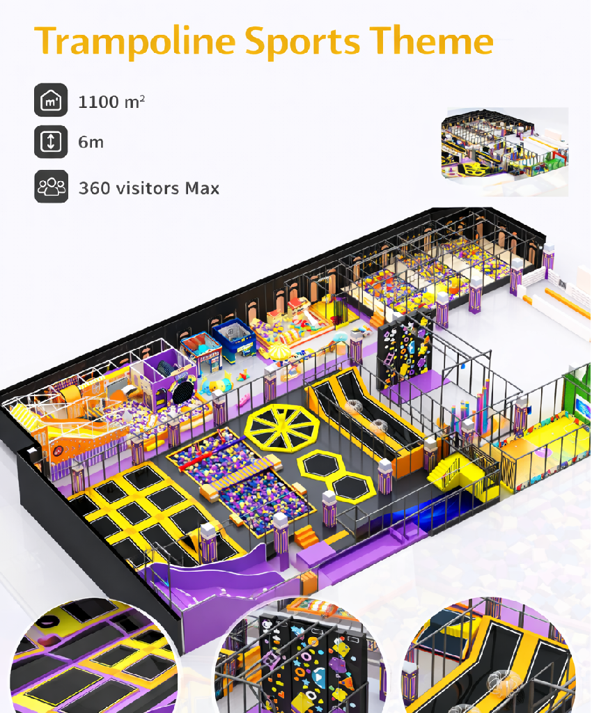 Lleva la diversión a otro nivel con nuestro Playground Trampoline Sports Theme, un parque infantil diseñado para combinar energía, movimiento y entretenimiento en un solo espacio 🟣💚